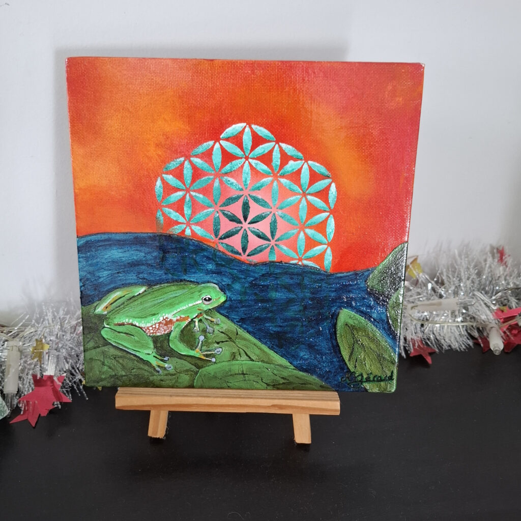 Laissez vous votre âme être purifiée grâce à cette toile. La fleur de vie et le chant de la grenouille sont de merveilleuses méthodes de nettoyage énergétique.